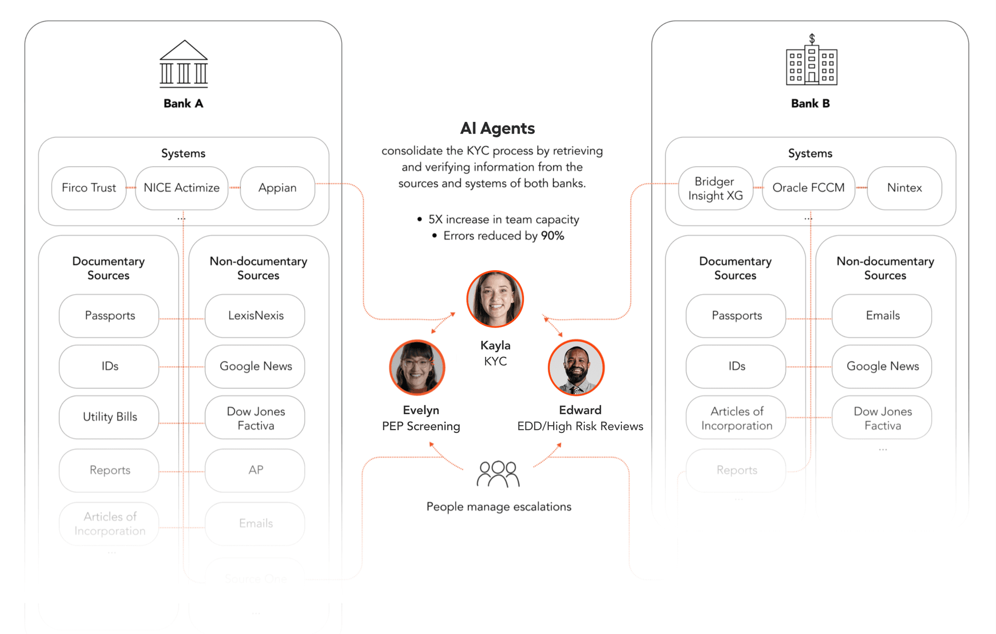 AI Agents – Unified Technology Transforms KYC during M&A To understand how your financial institution can streamline and more effectively manage and mitigate KYC risk during M&A, it’s important to understand the all-in-one nature of WorkFusion AI Agents. These pre-packaged, pre-taught KYC experts integrate all the modern technologies that perform end-to-end KYC. Moreover, an AI Agent can be deployed much faster, making it a timely addition for M&A activity.